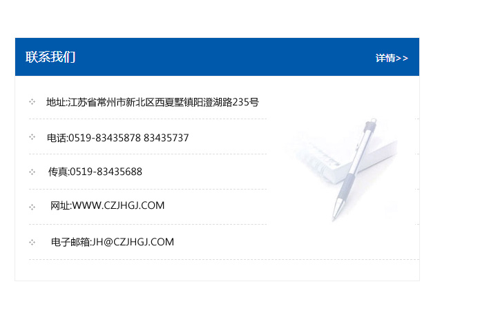 地址:常州市新北區(qū)友邦商務(wù)大廈1幢16、17層  電話:0519-85101652  傳真:0519-85112595  郵編:213022  網(wǎng)址:www.cz-jiayue_cn.sirong-cn.com  郵箱:xiajifengaa@163.com